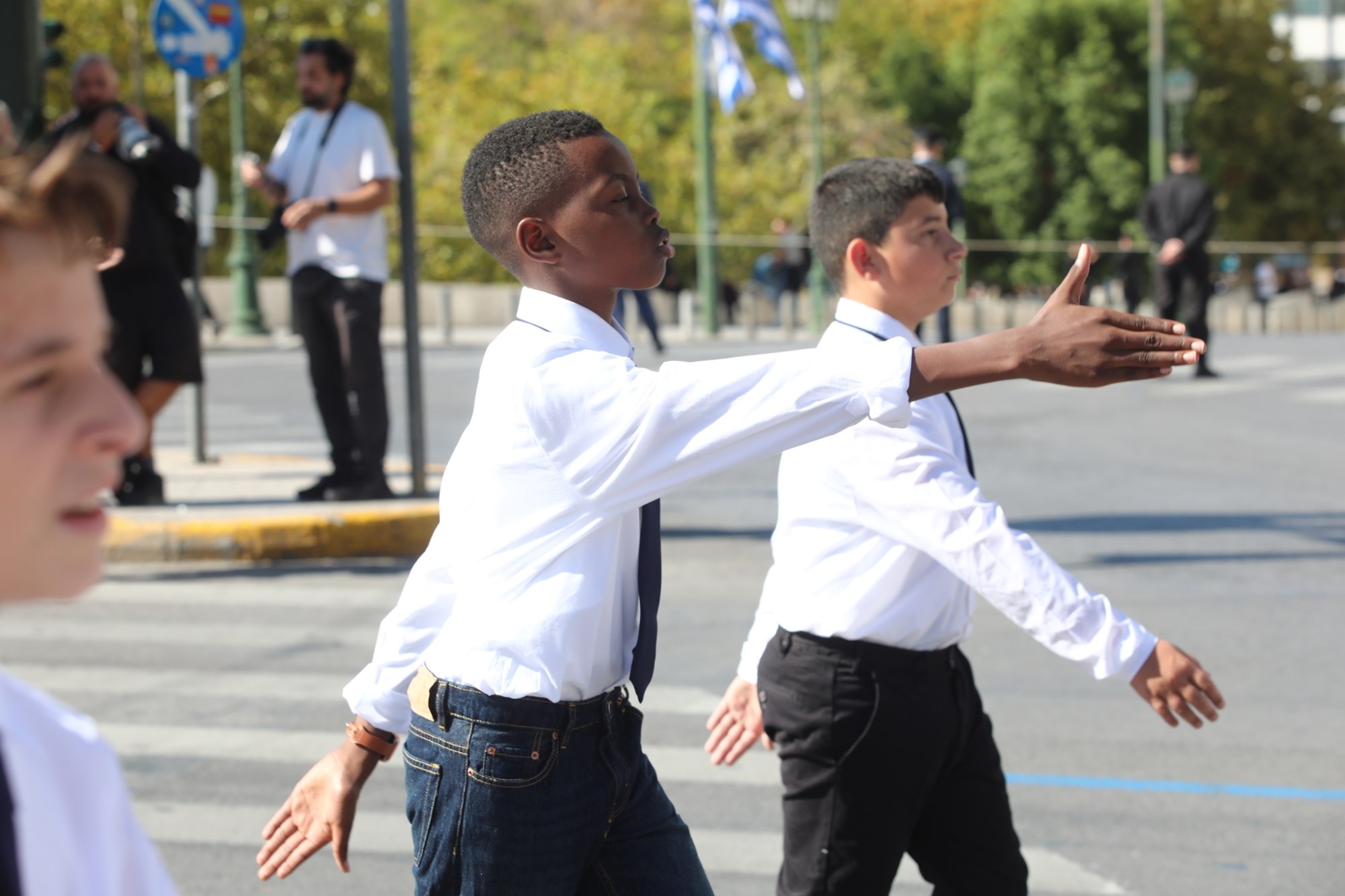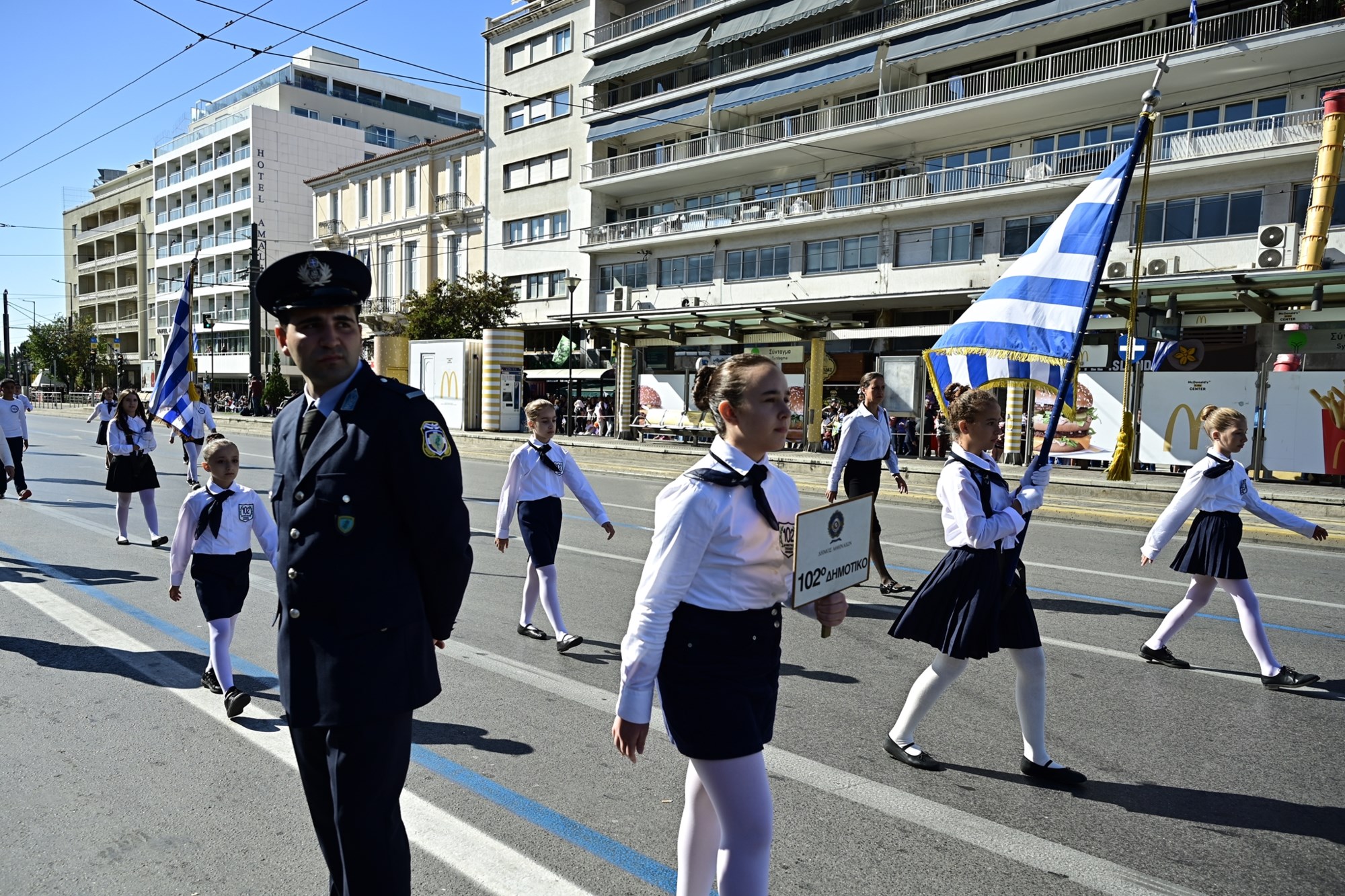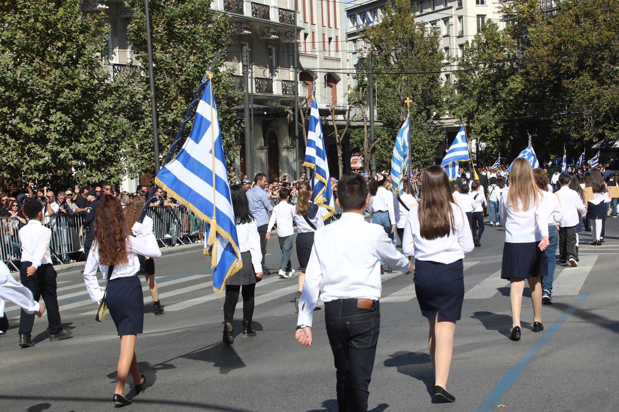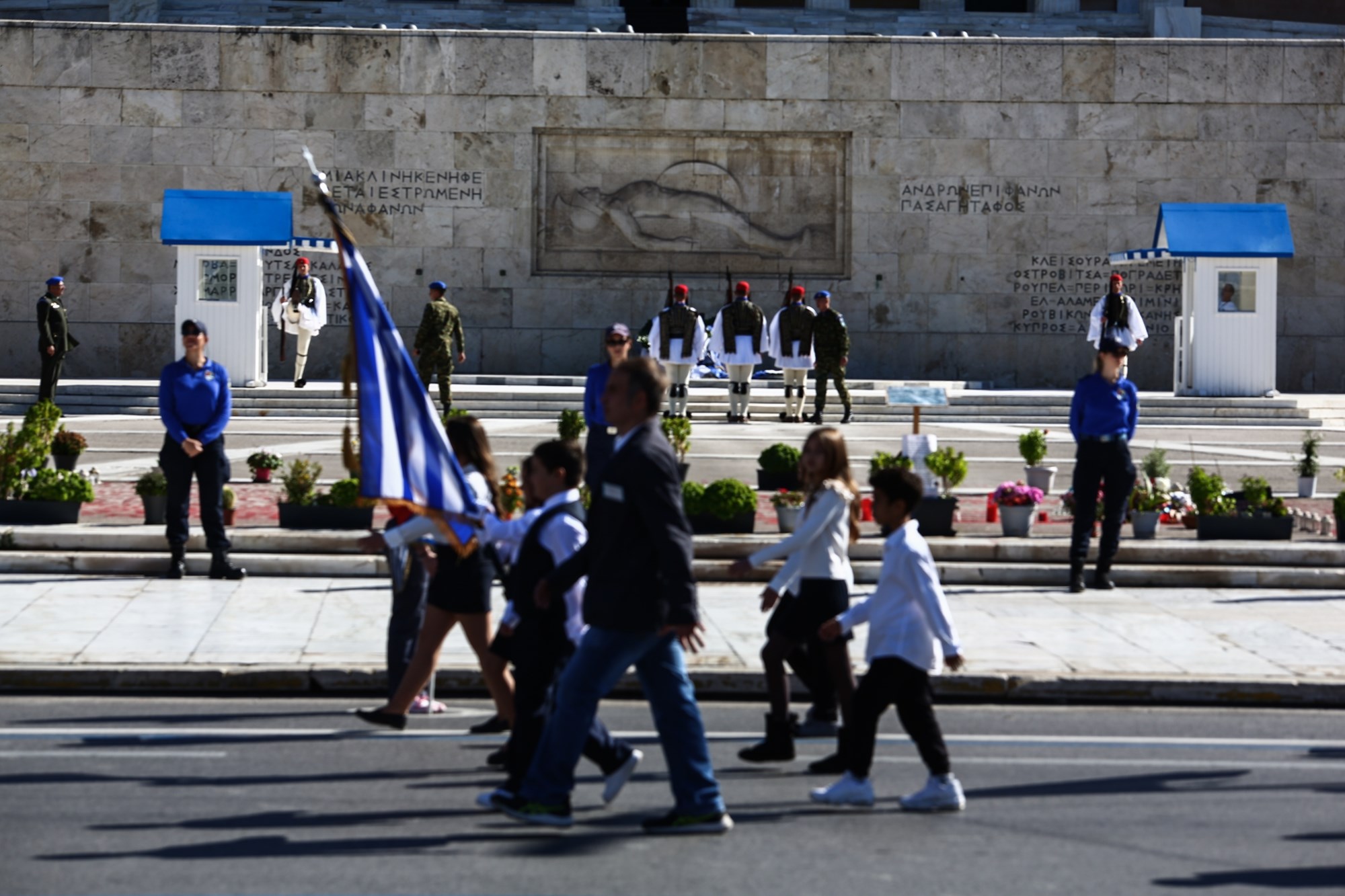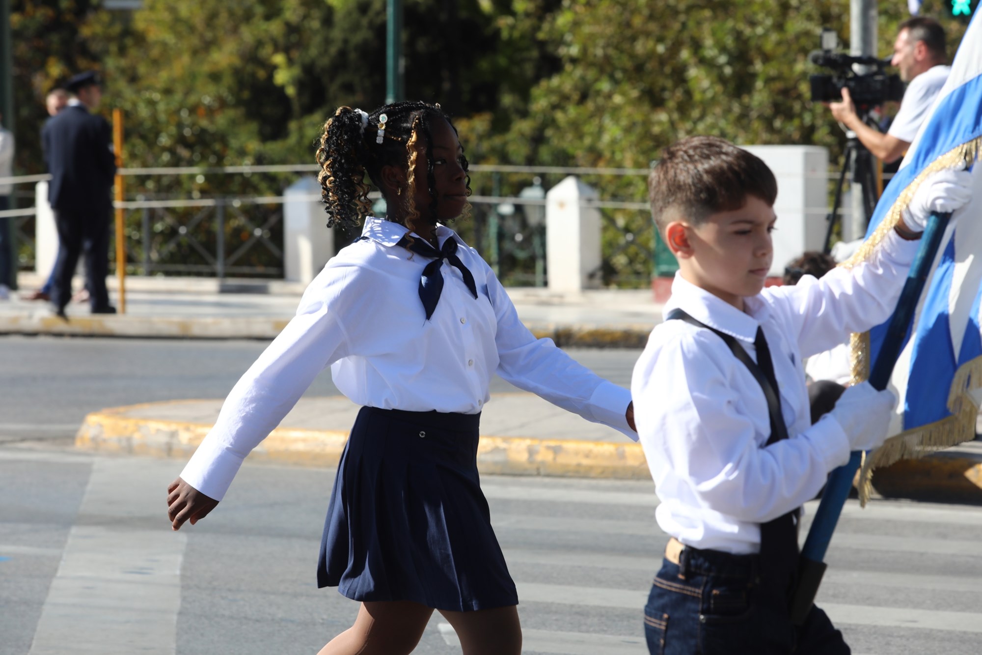 Με σύμμαχο τον καλό καιρό, μαθητές και μαθήτριες των σχολείων της Αθήνας, αλλά και πρόσκοποι, οδηγοί και ΑμεΑ, συμμετείχαν στην παρέλαση της 28ης Οκτωβρίου, μπροστά από το μνημείο του Αγνώστου Στρατιώτη, παρουσία της υπουργού Παιδείας, Σοφίας Ζαχαράκη.