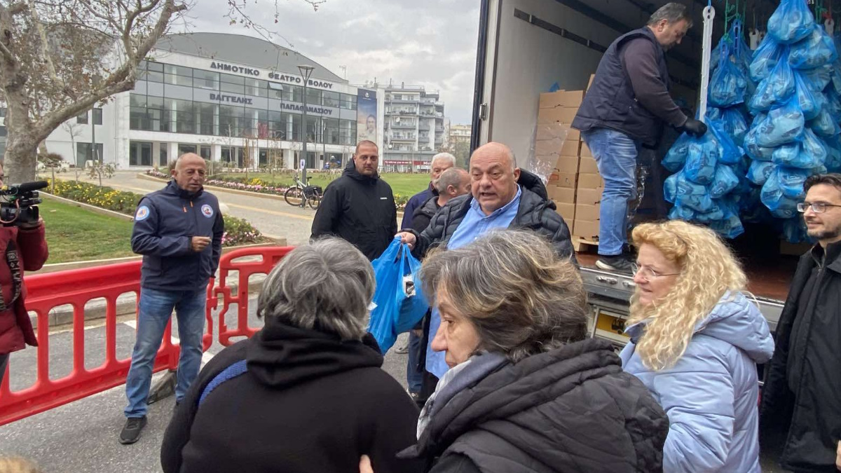 Στη διανομή συνέδραμαν μέλη της Λέσχης Ειδικών Δυνάμεων Μαγνησίας που είχαν φροντίσει για την τήρηση της σειράς προτεραιότητας, αλλά για την τοποθέτηση ομπρελών, για την προστασία των πολιτών από το ψιλόβροχο που έπεφτε την ώρα της διανομής.