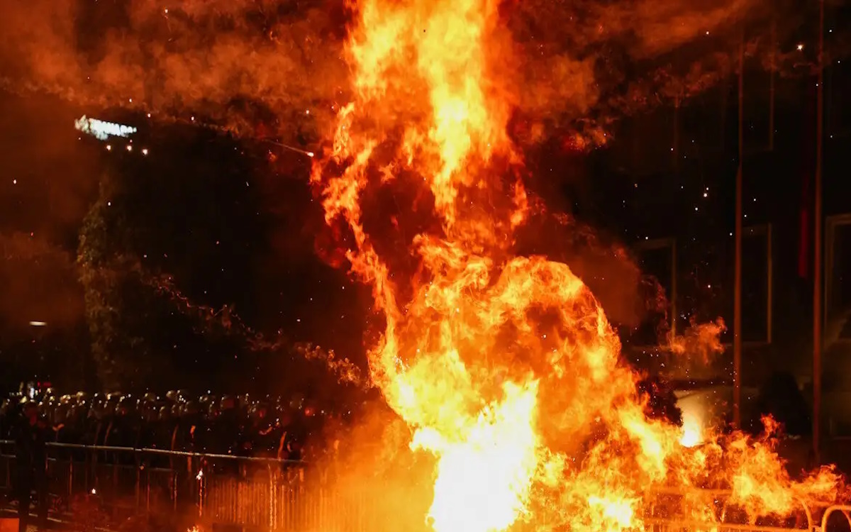 Οι διαδηλωτές έριξαν βόμβες μολότοφ σε κυβερνητικό κτίριο και η αστυνομία απάντησε με κανόνια νερού, στην τελευταία από μια σειρά βίαιων διαδηλώσεων που απειλούν τη σταθερότητα της μακροχρόνιας εξουσίας του πρωθυπουργού Έντι Ράμα, η οποία ξεκίνησε το 2013.