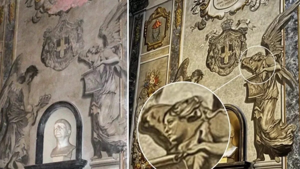 There's a major ongoing controversy in Italy: after the restoration of the San Lorenzo in Lucina church in Rome, one angel now appears to have Giorgia Meloni's face. pic.twitter.com/8Vi1nhH9IQ