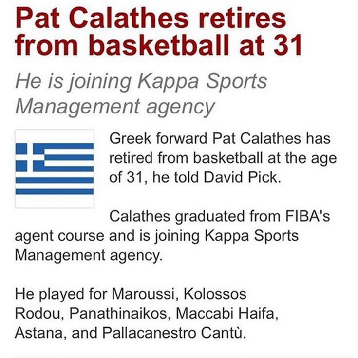 Την απόφαση να σταματήσει το μπάσκετ πήρε ο Πατ Καλάθης στα 31 του χρόνια, κάτι που ανακοίνωσε μέσω instagram.