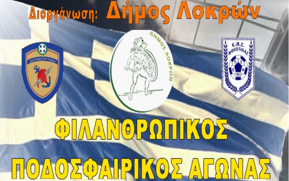 Ένας σημαντικός φιλανθρωπικός αγώνας θα πραγματοποιηθεί την επόμενη Τετάρτη 6 Μαρτίου στο δημοτικό στάδιο Αταλάντης. Η Εθνική ομάδα των ενόπλων Δυνάμεων και Μικτή ομάδα της Φθιώτιδας θα παίξουν με σκοπό να βοηθήσουν έναν συνάνθρωπο μας που αντιμετωπίζει σοβαρό πρόβλημα Υγείας.