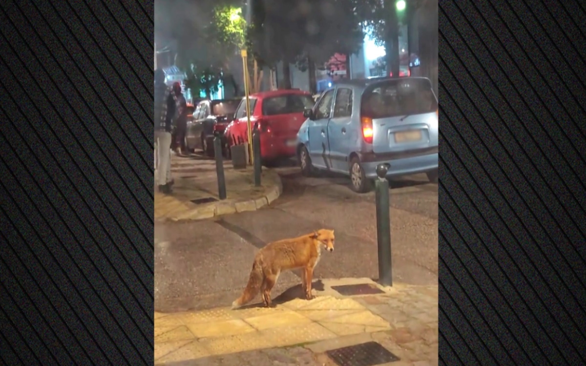 Μία αλεπουδίτσα απαθανατίστηκε στην Νέα Ερυθραία, καθισμένη ατάραχη στο πεζοδρόμιο, σαν να μην την απασχολούσε τίποτα γύρω της.