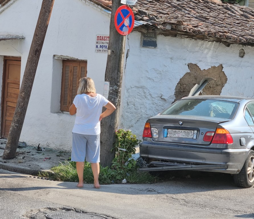 Αυτοκίνητο καρφώθηκε σε σπίτι στα Τρίκαλα (φώτο)