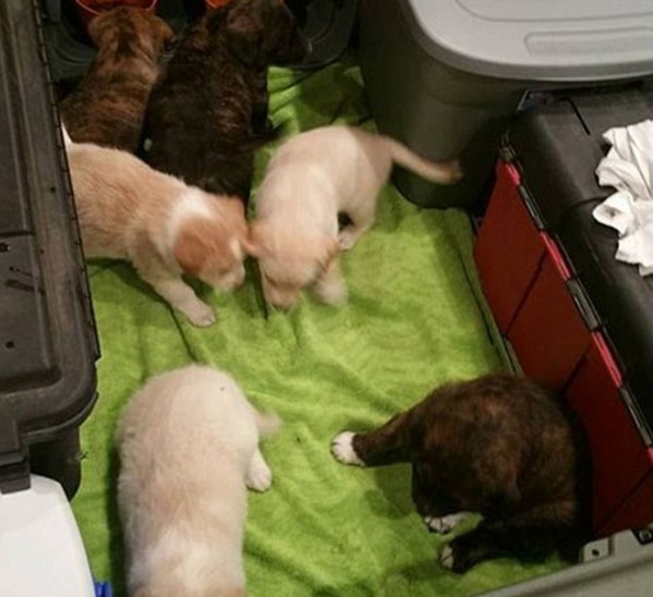 Οι οκτώ άνδρες πρόσεξαν πως η σκυλίτσα ήταν προφανώς πολύ αδύνατη και είχε μόλις γεννήσει. Ήταν τόσο πεινασμένη που δεν είχε καν αρκετό γάλα για τα μικρά της. Την ονόμασαν Annie και την ακολούθησαν στο δάσος όπου ανακάλυψαν την… πολυμελή οικογένειά της, τα έξι κουτάβια της, καλυμμένα με χώματα και γεμάτα ψύλλους, κρυμμένα σε μια τρύπα στο έδαφος.