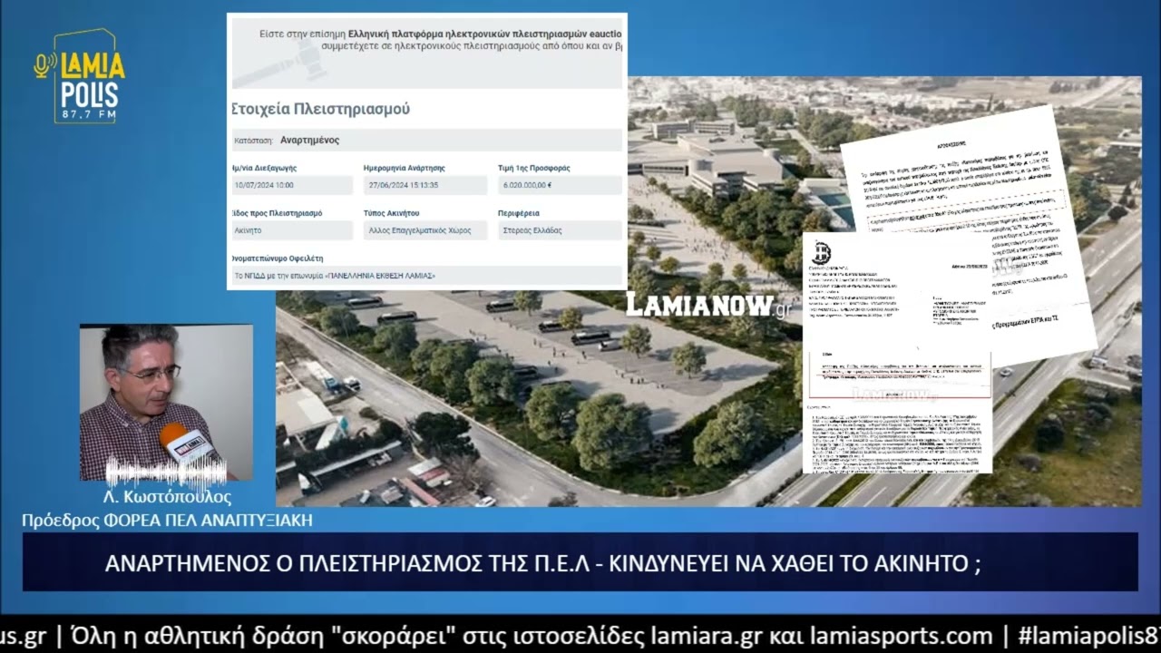 Έκδηλη παραμένει στους συμπολίτες μας η ανησυχία για τον πλειστηριασμό της Πανελλήνιας Έκθεσης Λαμίας αφού για ένα χρέος που δεν ξεπερνάει τις 210.000 ευρώ κινδύνεύει να… πλειστηριαστεί, ολόκληρο το ακίνητο για 6.020.000 ευρώ! Όλα αυτά από την στιγμή που αναρτήθηκε στις 27/06/2024 και παραμένει ενεργός ο πλειστηριασμός στην ιστοσελίδα e-auctions.gr για τις 10/07/2024.