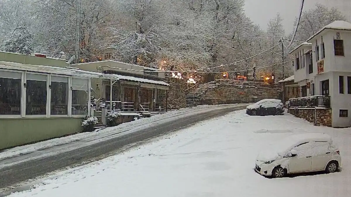 Ανάμεσα στις περιοχές που είδαν έντονες χιονοπτώσεις είναι η Πορταριά Πηλίου, ενώ στα Χάνια που βρίσκονται ψηλότερα το είχε στρώσει από πολύ νωρίτερα.