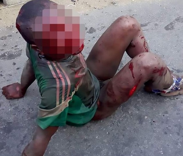 Αν και δεν είναι ξεκάθαρο, εικάζεται ότι το μικρό αγόρι κάηκε μέχρι θανάτου στη μέση του δρόμου.