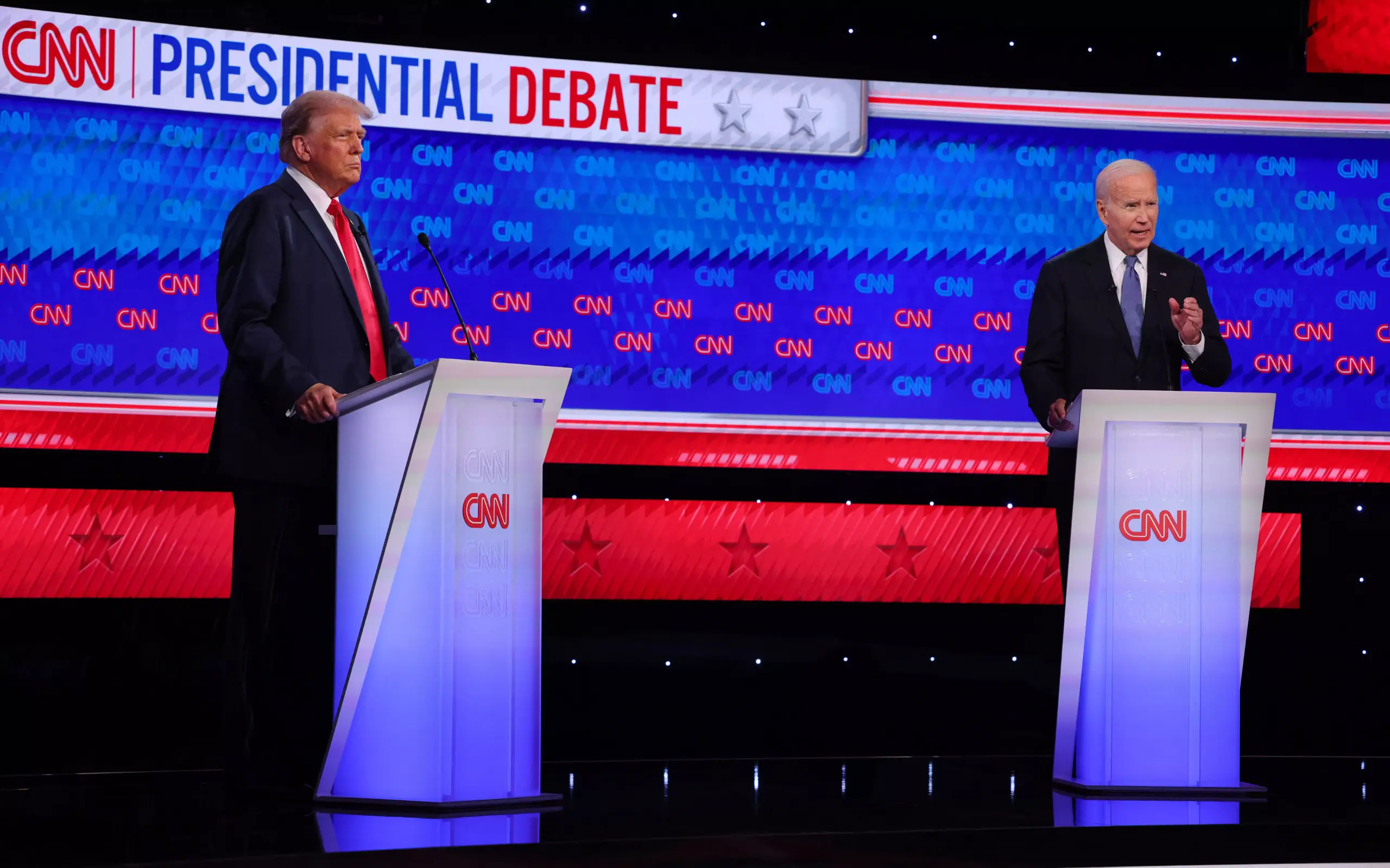 Ο 81χρονος Δημοκρατικός πρόεδρος ήταν βραχνιασμένος και τον ταλαιπώρησε ένας βήχας στα πρώτα λεπτά του ντιμπέιτ, ενώ κάποια στιγμή φάνηκε να χάνει τον ειρμό της σκέψης του. Ωστόσο, στη συνέχεια παρουσιάστηκε πιο συγκροτημένος και εξαπέλυσε συχνά επιθέσεις στον αντίπαλό του.