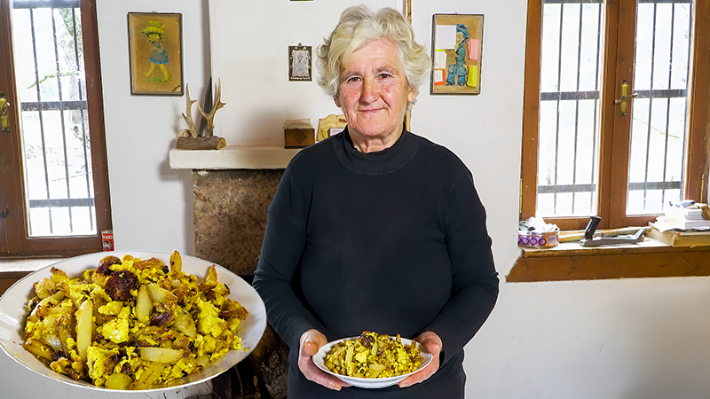 Παρακολουθήστε την ετοιμασία ενός παραδοσιακού, γρήγορου φαγητού με χωριάτικο λουκάνικο, φρέσκες πατάτες και αυγά, υπό τους ήχους της φύσης και της φωτιάς που καίει. Μια εμπειρία χωρίς λόγια, μόνο εικόνα και φυσικοί ήχοι του βουνού.