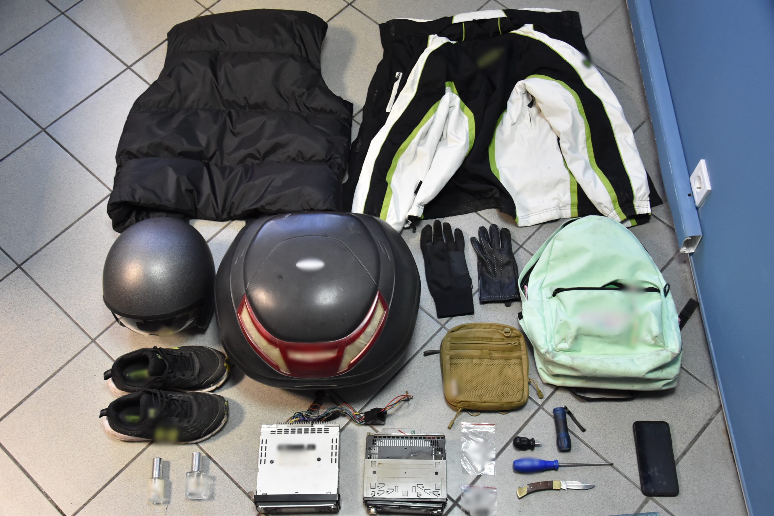 Η λεία που αποκόμισε ο συλληφθείς, από την παράνομη και εξακολουθητική δράση του, περιλαμβάνει χρήματα, ηχοσυστήματα αυτοκινήτων και άλλες ηλεκτρονικές συσκευές (κινητά τηλέφωνα, φορητός ηλεκτρονικός υπολογιστής κ.λπ.), μπαταρίες αυτοκινήτων και φορτιστές αυτών, είδη ένδυσης και υπόδησης, καθώς επίσης έγγραφα και άλλα αντικείμενα των παθόντων, η συνολική αξία των οποίων υπερβαίνει τα -4.500- ευρώ.