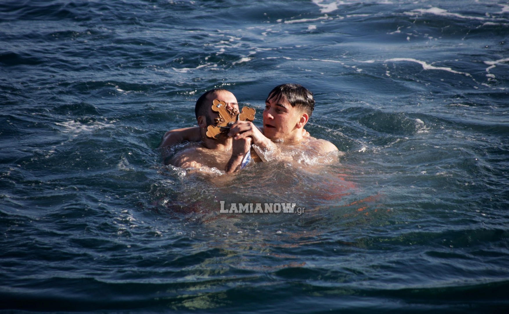 Αρκετοί θαρραλέοι νεαροί βούτηξαν στα νερά του Μαλιακού Κόλπου και έπιασαν τον Σταυρό ενώ από τις βάρκες, ντόπιοι ψαράδες άναψαν καπνογόνα. Δύο αδέρφια από τη Λαμία ο Γιάννης -Μάριος και ο Κωνσταντίνος Τάνος, έπιασαν τον Σταυρό…