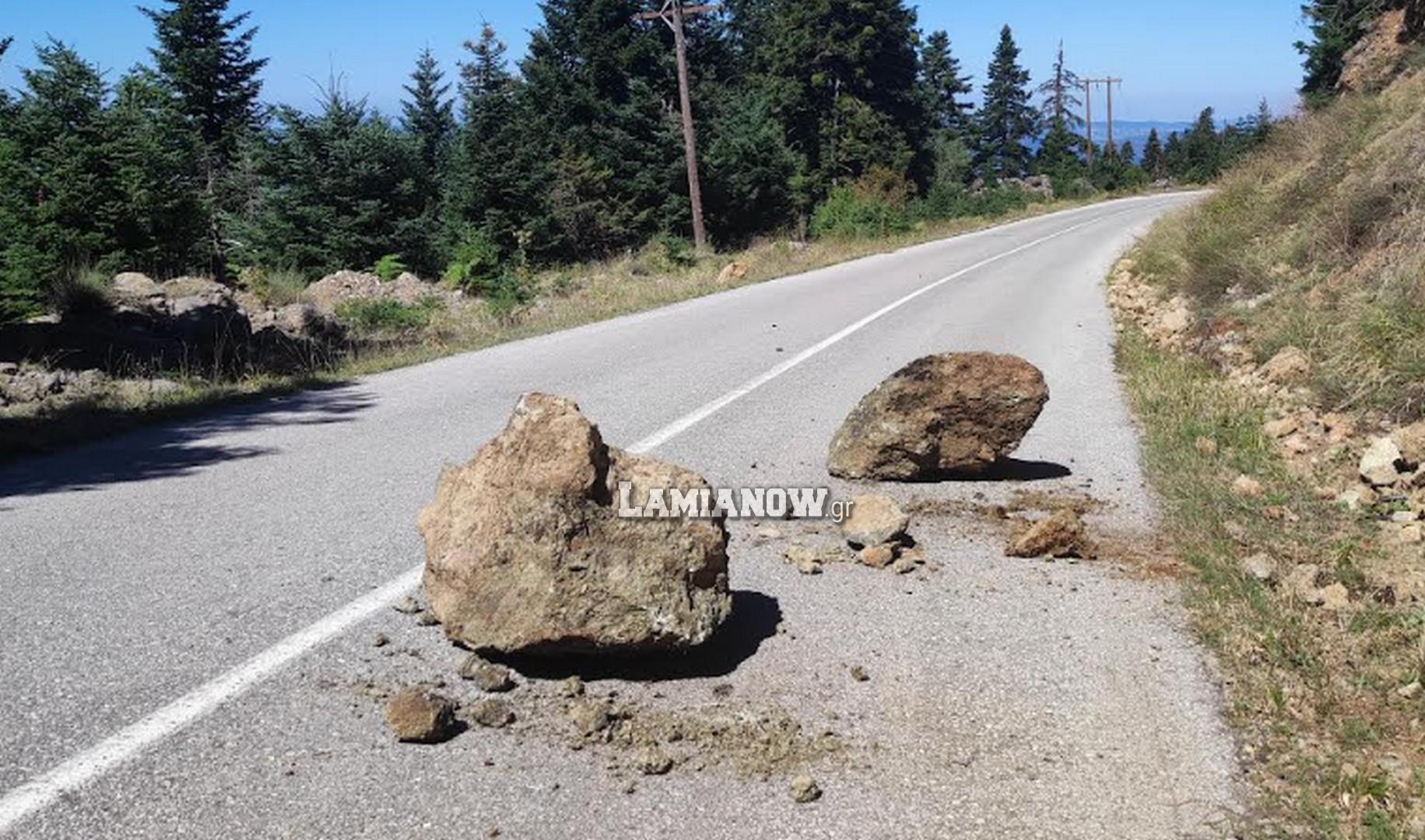 Μεγάλοι βράχοι υποχώρησαν από το βουνό και έπεσαν μέσα στον δρόμο λίγο πριν τις 14.00 το μεσημέρι της Τετάρτης. Το σημείο όπου σημειώθηκε το περιστατικό είναι 3χλμ μετά την Καστανιά στον δρόμο προς Νεοχώρι Υπάτης.