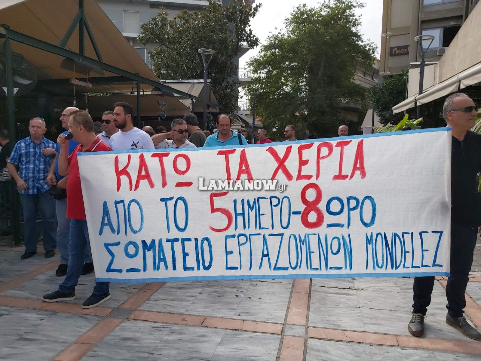 Το εργατικό κέντρο Λαμίας, πραγματοποίησε συγκέντρωση στην Πλατεία Ελευθερίας, στην οποία αναρτήθηκαν πανώ με συνθήματα κατά των αποφάσεων για την κατάργηση του 8ωρου και του 5νθημέρου.