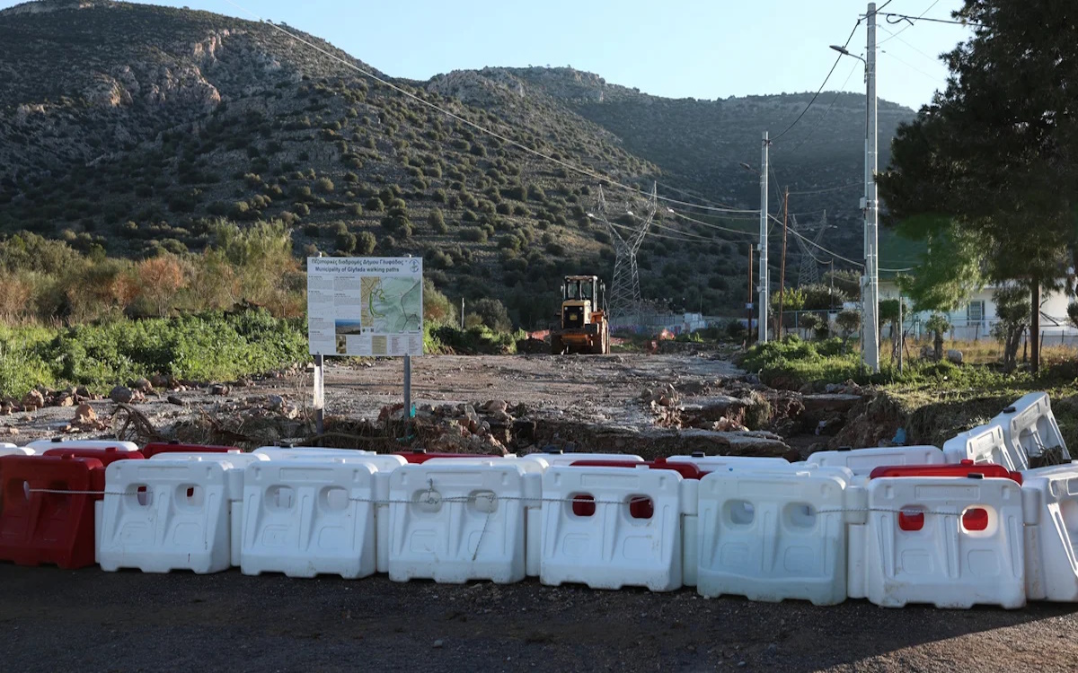 Οδοφράγματα και τσιμεντένια μπλοκ τοποθετήθηκαν στην Άνω Γλυφάδα, στο τέρμα της οδού Μετσόβου, μετά τη φονική κακοκαιρία που έπληξε την περιοχή πριν από περίπου 11 ημέρες.