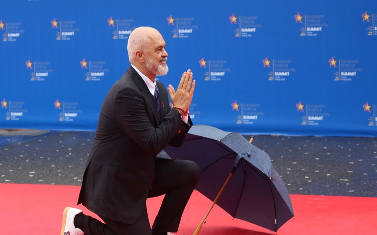 Με σκούρο κοστούμι και αθλητικά παπούτσια, κρατώντας κατά διαστήματα ομπρέλα για να προστατευθεί από τη βροχή, ο Αλβανός πρωθυπουργός Έντι Ράμα υποδέχθηκε με έναν ξεχωριστό τρόπο τους αρχηγούς κρατών και κυβερνήσεων που ταξίδεψαν στα Τίρανα για την σύνοδο κορυφής της Ευρωπαϊκής Πολιτικής Κοινότητας.