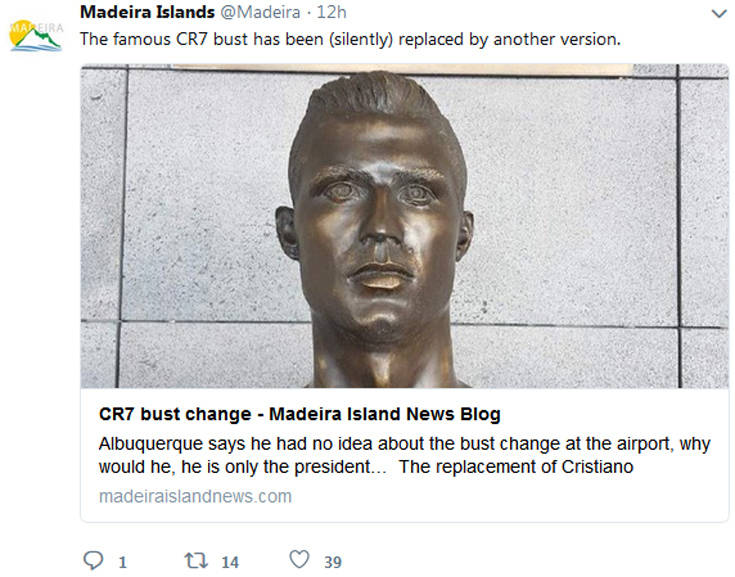 Η αλλαγή στην προτομή έγινε αμέσως μετά τα τρία γκολ του CR7 επί της εθνικής Ισπανίας, για τη δεύτερη ημέρα του Παγκοσμίου Κυπέλλου 2018. Ωστόσο, φαίνεται ότι ο κόσμος θέλει πίσω το ιδιαίτερο δημιούργημα, που είχε προκαλέσει αρκετά σχόλια, μέχρι και χλεύη.