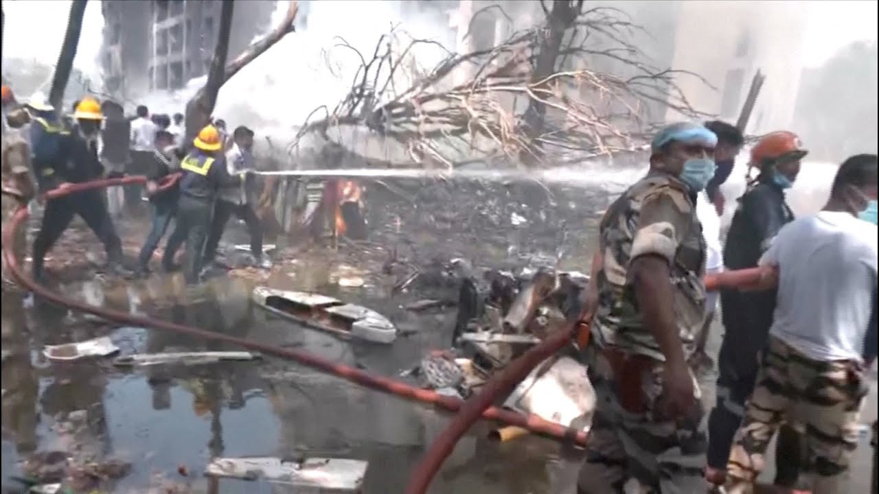 Το προσωπικό έκτακτης ανάγκης επιχειρεί στο σημείο όπου συνετρίβη το αεροπλάνο / Πηγή φωτογραφίας: ANI / Reuters TV via REUTERS