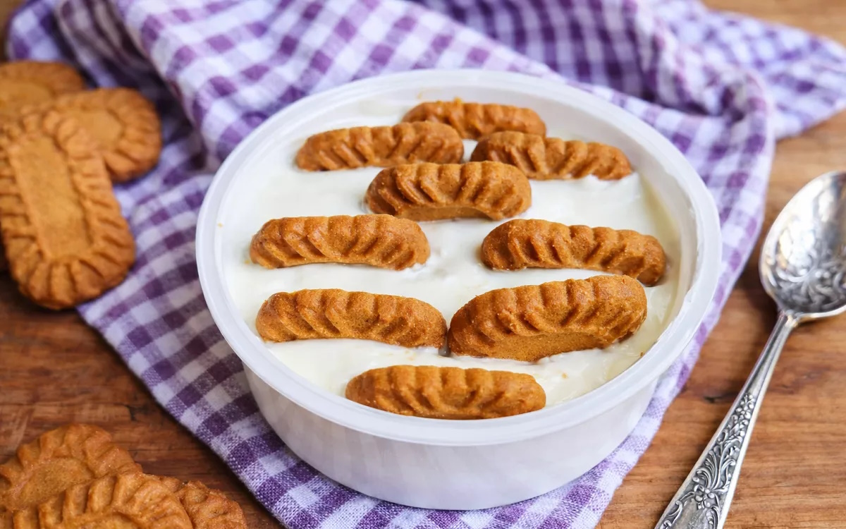Όλη του η μαγεία βασίζεται στην απλότητα: μόνο δύο υλικά, γιαούρτι και μπισκότα Biscoff.