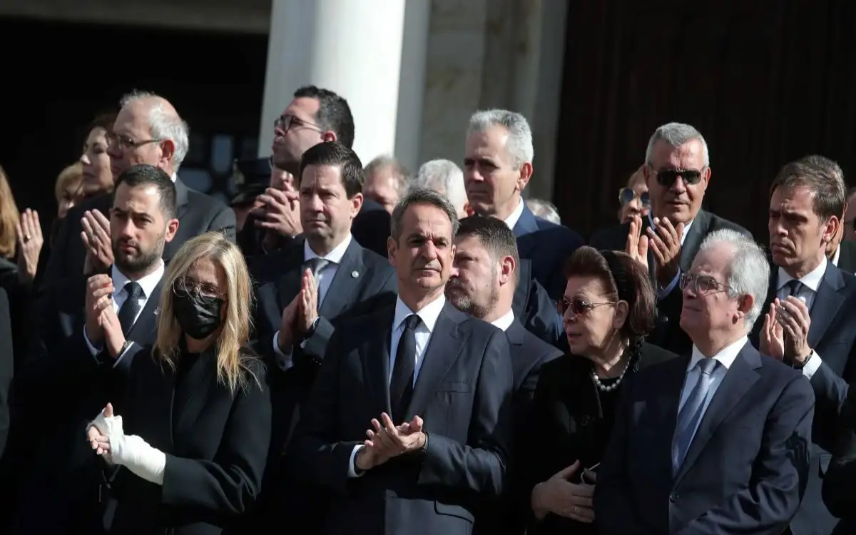 Στη Μητρόπολη βρέθηκαν ο Πρωθυπουργός Κυριάκος Μητσοτάκης με τη Μαρέβα Γκραμπόφσκι, εμφανίστηκε με επιδέσμους στα χέρια της μετά την πρόσφατη περιπέτεια που είχε με την υγεία της, ο Πρόεδρος της Δημοκρατίας Κωνσταντίνος Τασούλας, η Νίκος Χαρδαλιάς, η Μαριάννα Λάτση, η Άντζελα Γκερέκου, η Μιμή Ντενίση και πλήθος κόσμου.
