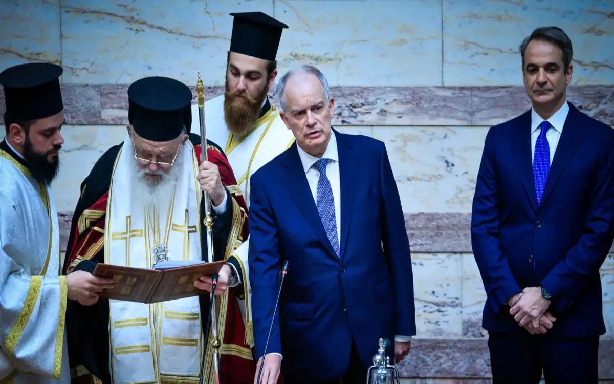 Στις 11.32, ο κ. Τασούλας έδωσε θρησκευτικό όρκο να τηρεί «το Σύνταγμα και τους νόμους», στις 11:33 υπέγραψε μαζί με τον αρχιεπίσκοπο, τον πρωθυπουργό και τον πρόεδρο της Βουλής το πρωτόκολλο ορκωμοσίας και στις 11:34 ανακηρύχθηκε νέος Πρόεδρος της Δημοκρατίας» κάτω από τα θερμά χειροκροτήματα του κ. Μητσοτάκη, των βουλευτών της ΝΔ, του προέδρου του ΠΑΣΟΚ Νίκου Ανδρουλάκη και της Κοινοβουλευτικής του Ομάδας αλλά και της ανεξάρτητης βουλευτού Αθηνάς Λινού.
