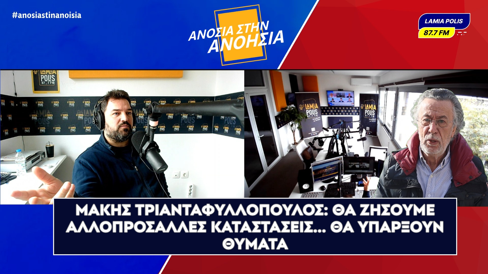 Στην εκπομπή «Ανοσία στην Ανοησία» με τον Πάνο Κατσώνη, ο δημοσιογράφος Μάκης Τριανταφυλλόπουλος μίλησε χωρίς φίλτρα για τον καιρό, την οδηγική παιδεία, το δυστύχημα στα Τέμπη, τη δικαιοσύνη, το πολιτικό σύστημα αλλά και την κοινωνική κρίση που βλέπει να έρχεται.