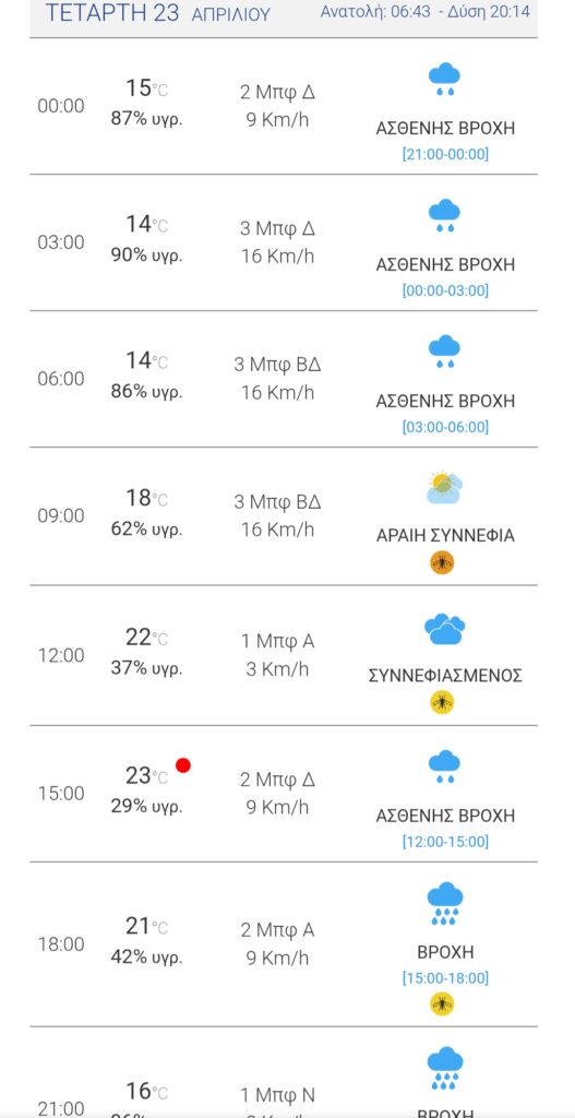 Ο καιρός την Τετάρτη (23/4)