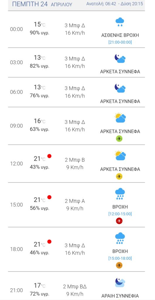 Ο καιρός την Πέμπτη (24/4)