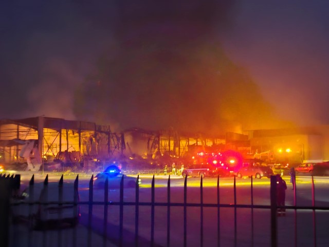 Σύμφωνα με την Πυροσβεστική, η φωτιά εκδηλώθηκε λίγο πριν τις 4:00 π.μ. και καίει πτέρυγα του εργοστασίου.
