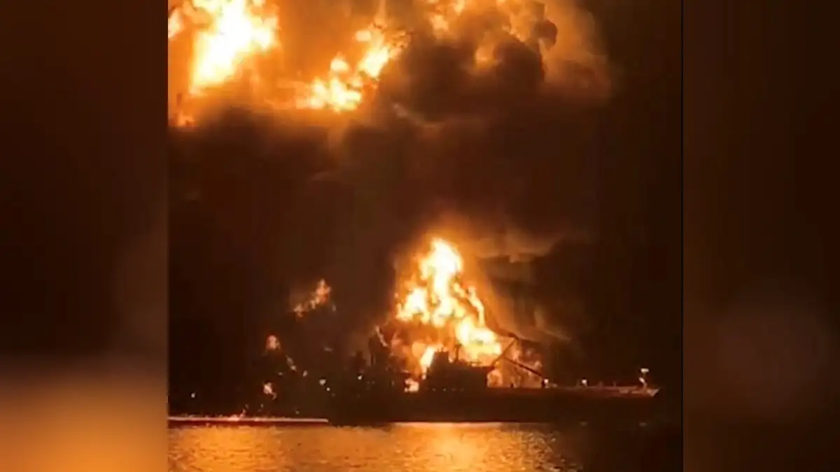 Σε βίντεο που κυκλοφορούν στο ίντερνετ δείχνουν ένα πλοίο τυλιγμένο στις φλόγες χωρίς να διευκρινίζεται αν κάποιο είναι το Zefyros.