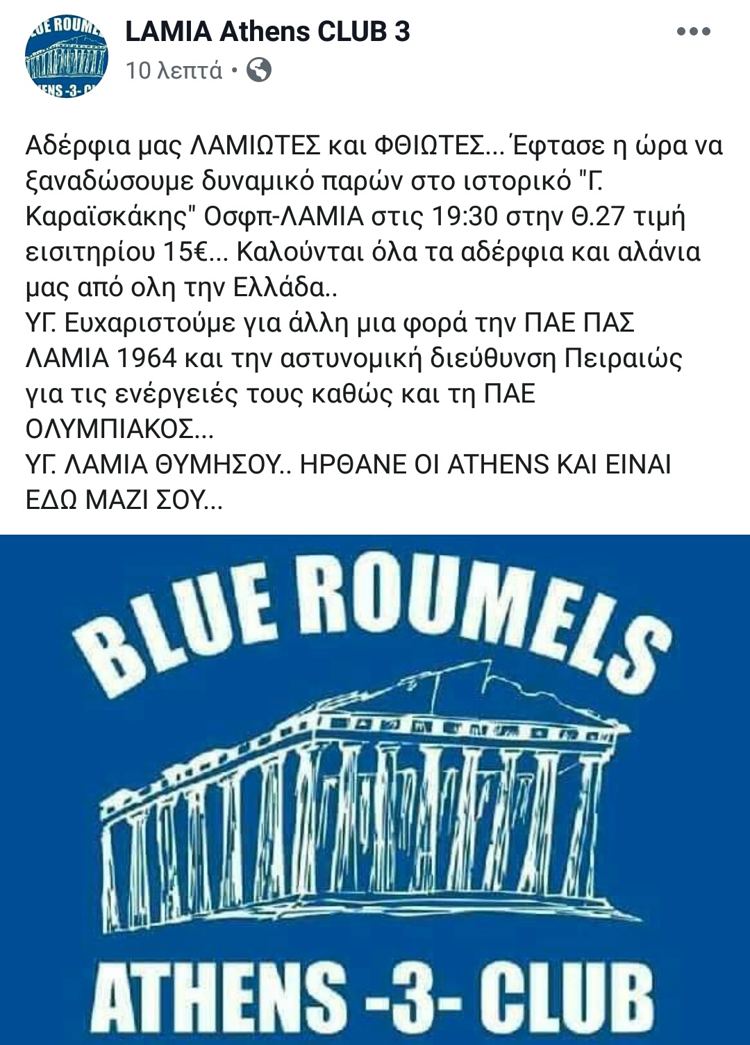 Η ανακοίνωση των Athens δίνουν τις απαραίτητες πληροφορίες ενώ αξίζει να σημειωθεί πως αρκετοί είναι οι φίλαθλοι της ομάδας μας που θα ταξιδέψουν από την Λαμία για να βρεθούν δίπλα της.