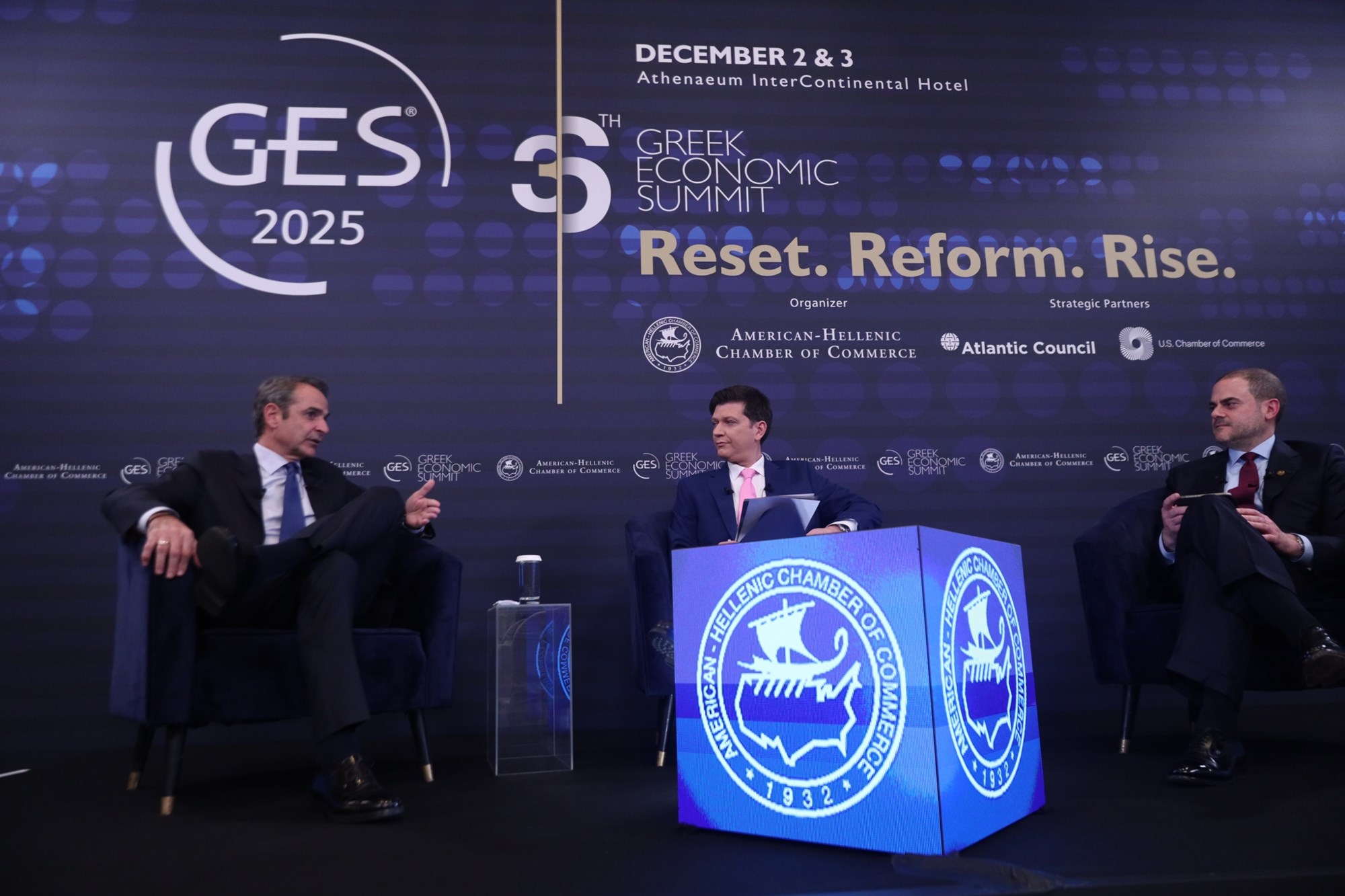 Αναφερόμενος στην οικονομία και ειδικά για την ανάπτυξη σε συζήτηση με τον πρόεδρο του Ελληνοαμερικανικού Επιμελητηρίου, Γιάννη Σαρακάκη, ο πρωθυπουργός τόνισε ότι η χώρα μας έχει σήμερα από τους υψηλότερους ρυθμούς ανάπτυξης στην Ευρωζώνη, ούσα ταυτόχρονα δημοσιονομικά υπεύθυνη και επιτυγχάνοντας πρωτογενή πλεονάσματα.