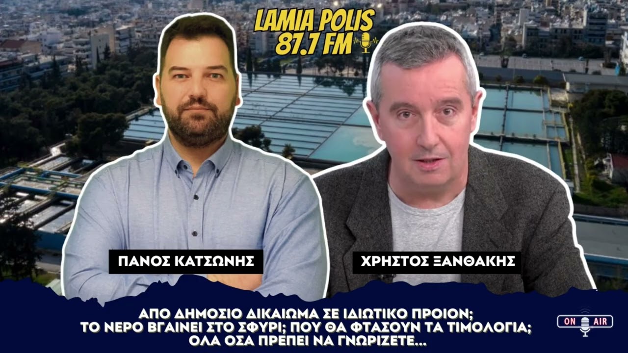 Σε μια εφ’ όλης της ύλης συζήτηση στον Lamia Polis 87.7 και την εκπομπή “Ανοσία στην Ανοησία” με τον Πάνο Κατσώνη, ο δημοσιογράφος και συγγραφέας Χρήστος Ξανθάκης προειδοποιεί πως το νερό είναι το επόμενο μεγάλο «φιλέτο» προς ιδιωτικοποίηση. Με χιούμορ αλλά και έντονο προβληματισμό, θέτει το ζήτημα στις πραγματικές του διαστάσεις: οικονομικές, πολιτικές και κοινωνικές.