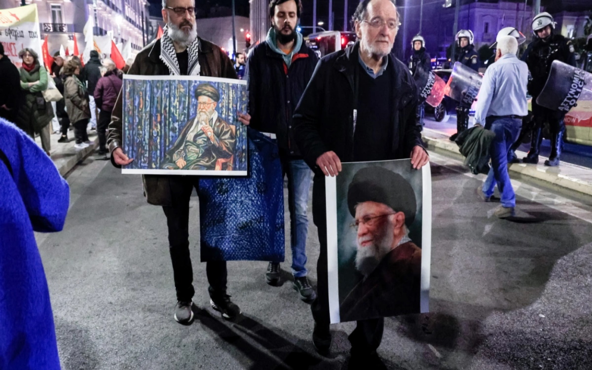 Ο κ. Λαφαζάνης θέλοντας να υπερτονίσει την αντίθεσή του στην επιχείρηση κατά του Ιράν από ΗΠΑ και Ισραήλ, προσήλθε στην αντιπολεμική διαδήλωση κρατώντας μία υπερμεγέθη φωτογραφία του νεκρού πλέον ανώτατου θρησκευτικού ηγέτη του Ιράν Αγιατολάχ Αλί Χαμενεΐ.