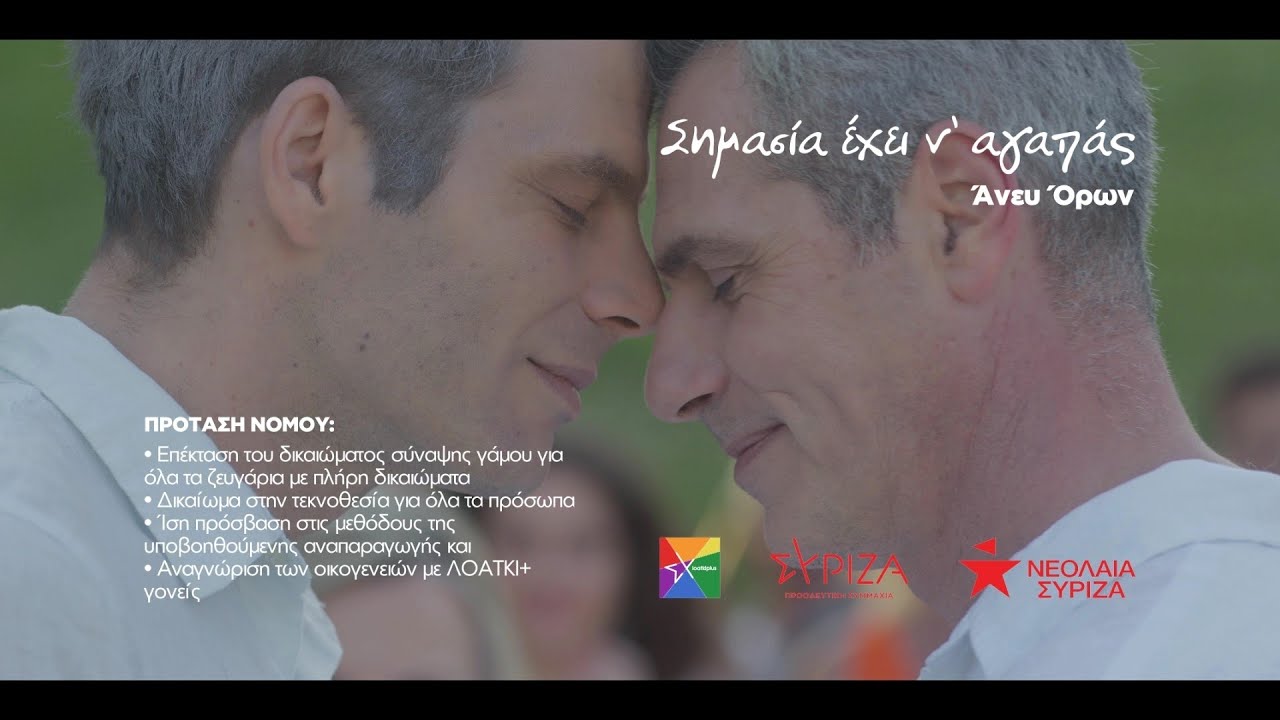 Μια μέρα μετά την απάντηση «κάθε πράγμα στον καιρό του», που έδωσε ο πρωθυπουργός Κυριάκος Μητσοτάκης, σε ερώτηση σχετικά με τους πολιτικούς γάμους μεταξύ ομόφυλων ζευγαριών, στα πλαίσια της συνέντευξης τύπου της 86ης ΔΕΘ Θεσσαλονίκης, κυκλοφόρησε στο διαδίκτυο το βίντεο κλιπ του τραγουδιού «Σημασία έχει ν’ αγαπάς… Άνευ Όρων» της Ομάδας ΛΟΑΤΚΙ και του ΣΥΡΙΖΑ-Προοδευτική Συμμαχία.