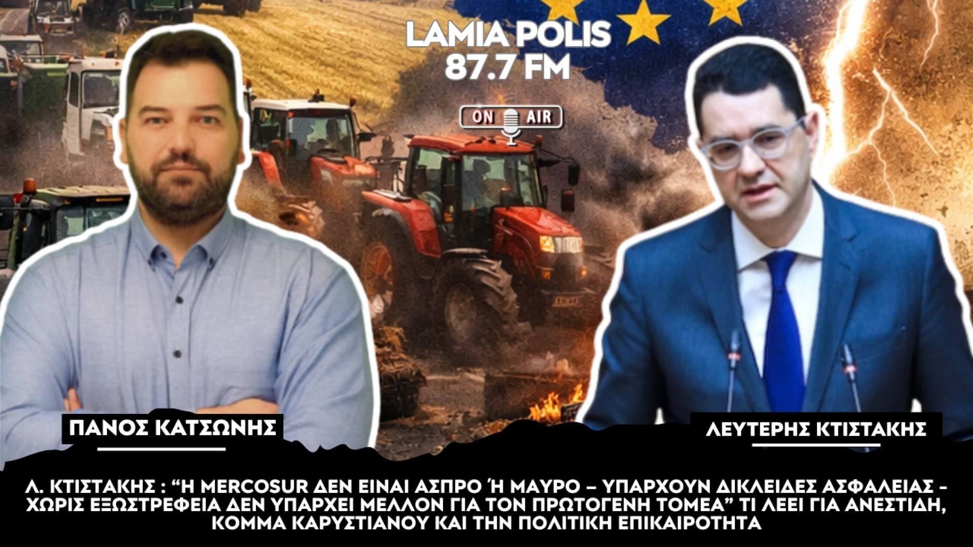Σε μια εκτενή συζήτηση με αφορμή τις συνεχιζόμενες αγροτικές κινητοποιήσεις, ο βουλευτής Ν.Δ Βοιωτίας Λευτέρης Κτιστάκης τοποθετήθηκε στον Lamia Polis 87.7 και την εκπομπή “Ανοσία στην Ανοησία” με τον Πάνο Κατσώνη για τον διάλογο κυβέρνησης – αγροτών, τη συμφωνία Mercosur, αλλά και το γενικότερο πολιτικό και θεσμικό περιβάλλον.