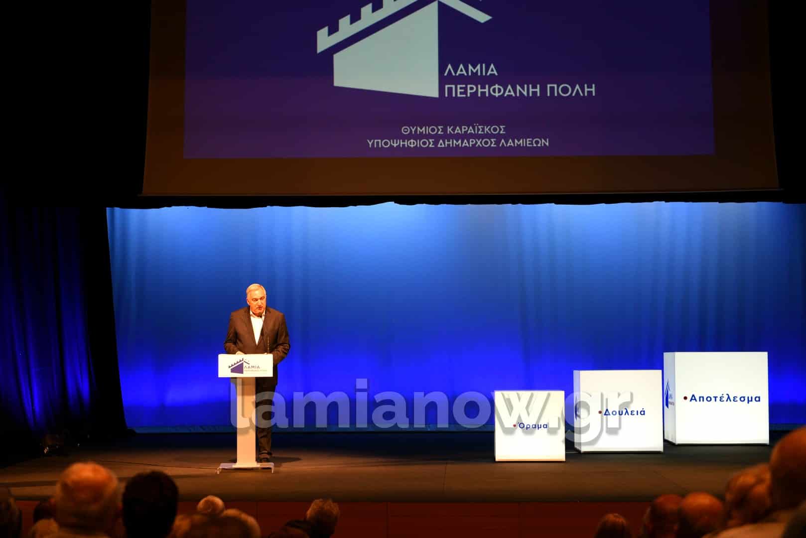 Την παρουσίαση του συνδυασμού και του προγράμματος του έκανε το βράδυ της Τετάρτης στο δημοτικό θέατρο Λαμίας ο υποψήφιος δήμαρχος Λαμιέων, Θύμιος Καραισκος.