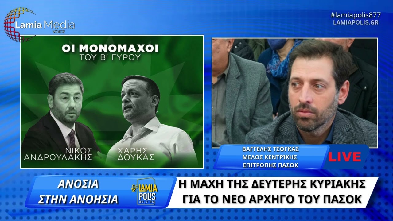 Λίγο πριν ανοίξουν για δεύτερη Κυριακή οι κάλπες του ΠΑΣΟΚ, ο Πάνος Κατσώνης και η εκπομπή “Ανοσία στην…. ανοησία” που μεταδίδεται καθημερινά στον Lamia Polis 87,7 φιλοξένησε το μέλος της Κεντρικής Επιτροπής του ΠΑΣΟΚ, Βαγγέλη Τσόγκα.