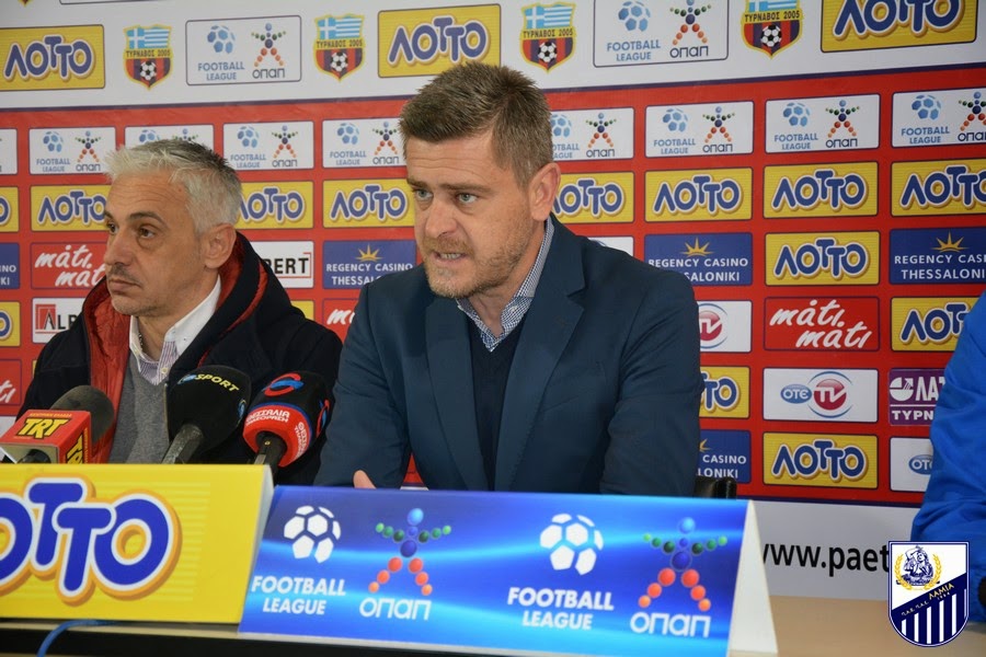 Έχω πει και έχω δει ότι μέχρι αυτή τη στιγμή η ομάδα στα εκτός έδρας παιχνίδια δεν έχει την απόδοση την οποία έχει μέσα στην έδρα της. Δεχόμαστε στις λίγες φάσεις που δέχεται η ομάδα όπως και σήμερα 2 τελειώματα του αντιπάλου, ισάριθμα γκολ και από την άλλη ενώ δημιουργούμε ευκαιρίες δεν πετυχαίνουμε τα γκολ που έχουμε τη δυνατότητα να πετύχουμε και σαν ομάδα και σαν ποιότητα παικτών. Η Λαμία είναι μια ομάδα που για να πάρει τη νίκη εκτός έδρας θα πρέπει η απόδοσή της να κυμαίνεται σε υψηλά επίπεδα κάτι το οποίο φυσικά δεν έγινε και σήμερα. Θέλει μεγαλύτερη προσπάθεια, περισσότερη συγκέντρωση και μεγαλύτερη πίστη για να μπορέσουμε να πετύχουμε το στόχο μας, έναν στόχο που είχε τεθεί από την αρχή της σεζόν και θεωρώ ότι έχουμε τη δυνατότητα και μπορούμε να τον πετύχουμε. Δεν έχουμε περιθώρια να μένουμε πολύ σ’ αυτό το αποτέλεσμα. Σίγουρα είναι ένα αποτέλεσμα που μας πληγώνει και σαν άτομα αλλά και σαν σύνολο, σαν ομάδα αλλά κοιτάζουμε το επόμενο ματς που είναι με τον Ηρακλή για να μπορέσουμε να κρατηθούμε στην δεύτερη θέση και να έχουμε όσο μπορούμε μια δικλείδα ασφαλείας από τους συνδιεκδικητές και αν μπορούμε να μειώσουμε και την διαφορά με τον πρώτο. Συγχαρητήρια στον Τύρναβο και στον Αποστόλη γιατί πραγματικά έχει μια πολύ καλή ομάδα, που έχει τη δυνατότητα να πετύχει το στόχο της που είναι η παραμονή στην κατηγορία.”