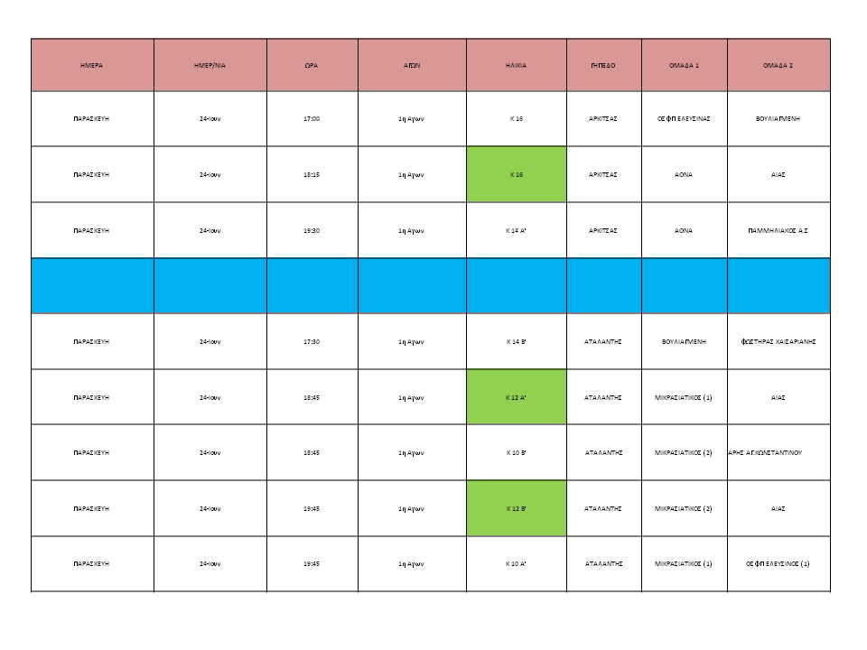 Τα γήπεδα διεξαγωγής των αγώνων είναι το 11 χ 11 της Αρκίτσας και το 11 χ 11 της Αταλάντης.