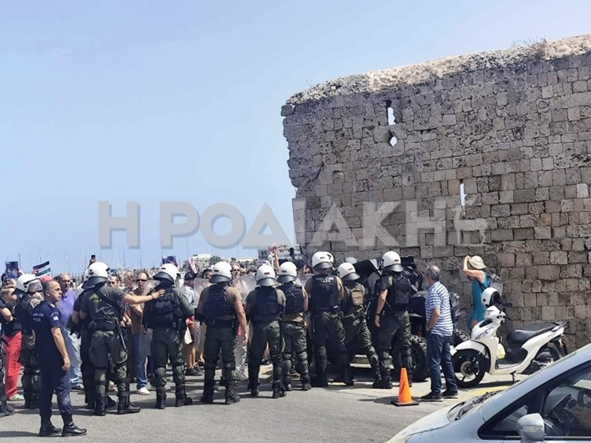 Ένταση προκλήθηκε το μεσημέρι της Δευτέρας, στο λιμάνι της Ρόδου, όταν διαδηλωτές προχώρησαν σε διαμαρτυρία για την παρουσία του κρουαζιερόπλοιου, στο οποίο επιβαίνουν περισσότεροι από 650 τουρίστες από το Ισραήλ.