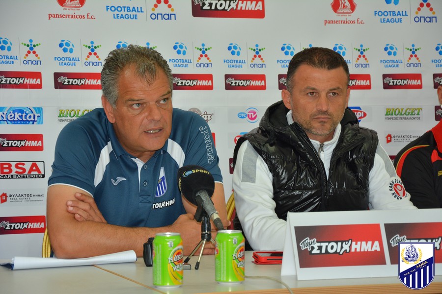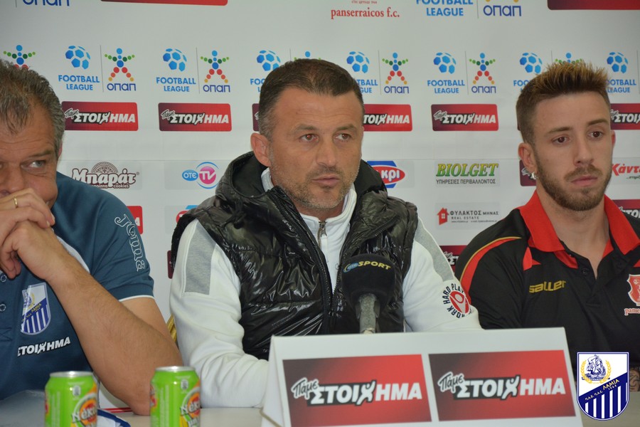 «Για μας το σημερινό παιχνίδι ήταν κομβικό και είχε ιδιαίτερη σημασία γιατί ξεκινά από το προηγούμενο. Ένα παιχνίδι που το περιμέναμε πολύ καιρό με τα Τρίκαλα και εμφάνιση μας και το αποτέλεσμα ήταν κατώτερο του αναμενομένου. Έτσι ξέρετε μετά από μία οδυνηρή ήττα θα πρέπει να γίνεις και λίγο ψυχολόγος, ψυχολόγος στα παιδιά, στην ομάδα, στους συνεργάτες, στον κόσμο, στην διοίκηση. Η αλήθεια είναι ότι πικράναμε πάρα πάρα πολλούς. Το καλό είναι όμως ότι δείξαμε θετικά στοιχεία ως ομάδα σήμερα να μπούμε να παίξουμε το παιχνίδι που ξέρουμε με κάτω την μπάλα, με κατοχή, με φάσεις, με πρέσινγκ. Δεν αλλάζει κάτι στο ότι ήμασταν κακοί το Σάββατο, αλλάζει όμως τι, ότι πηγαίνοντας μέχρι το τέλος έχουμε θέσει κάποιο στόχο και είναι σημαντικό μία ομάδα να έχει στόχο. Εγώ θα σταθώ στις ευκαιρίες που χάσαμε και νομίζω πως θα έπρεπε πιο γρήγορα να τελειώνουμε τα παιχνίδια. Αυτό είπα πάλι μπορεί να το πληρώσουμε μακάρι να μην γίνει έτσι μέχρι το τέλος της σεζόν. Θέλω να πω μπράβο στα παιδιά και στους συνεργάτες και σε όλη την οικογένεια της Λαμίας γιατί πέρασαν από μία έδρα που είναι δύσκολο κάποιος να περάσει. Να ευχηθώ σε όλους να έχετε Καλό Πάσχα, υγεία στις οικογένειες σας και προσωπικά στον κ. Κάκογλου το ίδιο και στον Φίλιπ που είχα την τιμή να τον έχω ποδοσφαιριστή στην Παναχαϊκή και είναι ένα από τα μεγαλύτερα δεκάρια που έχει βγάλει η χώρα. Χάρηκα πολύ που τον είδα να είναι υγιής, να είναι καλά και να μπει στο γήπεδο για να κάνει αυτά, που ξέρει όπως έκανε στην Παναχαϊκή».