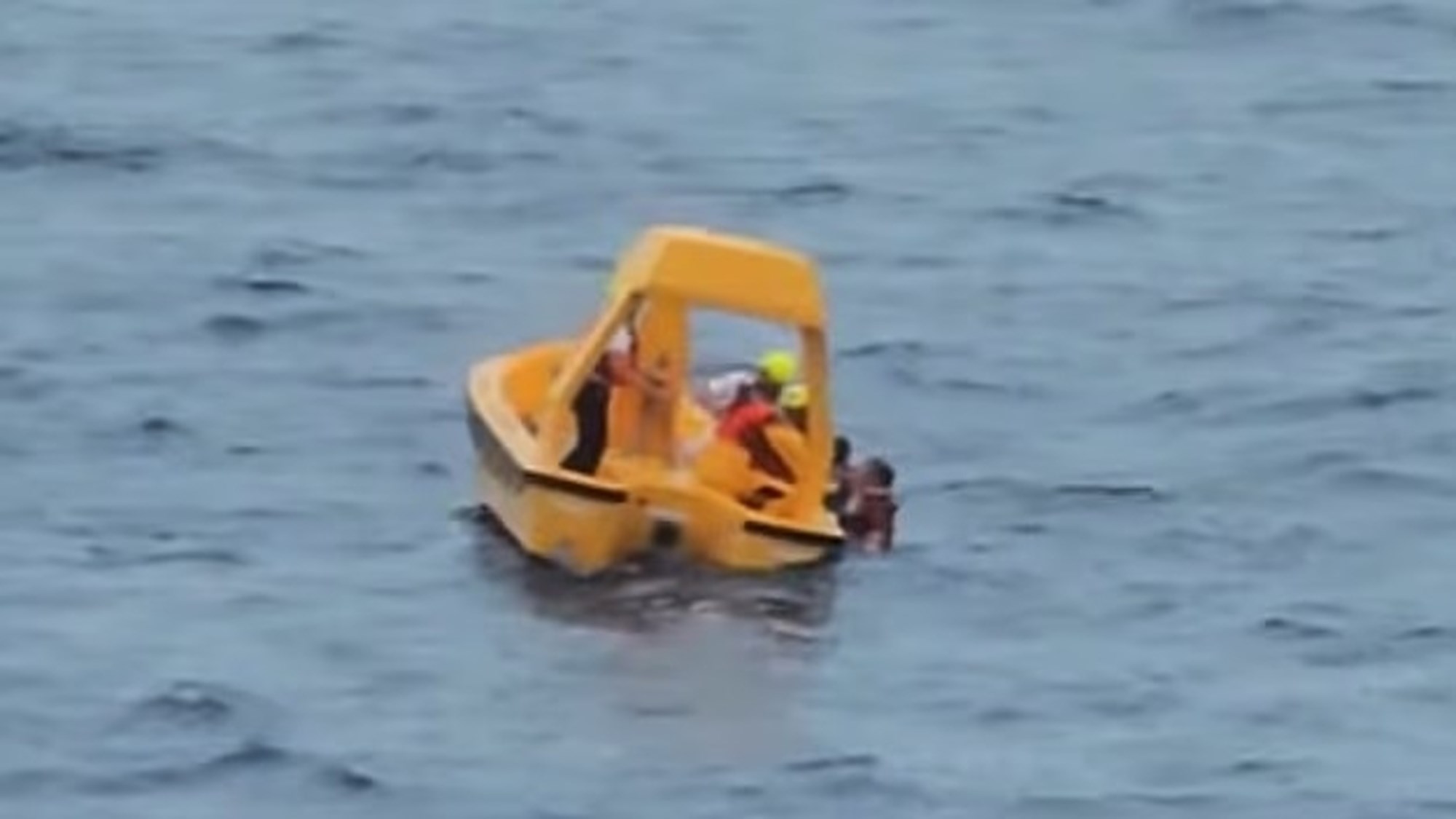 Μέσα σε λίγα λεπτά από τη στιγμή πατέρας και κόρη βρέθηκαν στα νερά του Ατλαντικού, τα μέλη του πληρώματος κατέβασε στη θάλασσα κίτρινη σωσίβια λέμβο στη θάλασσα.