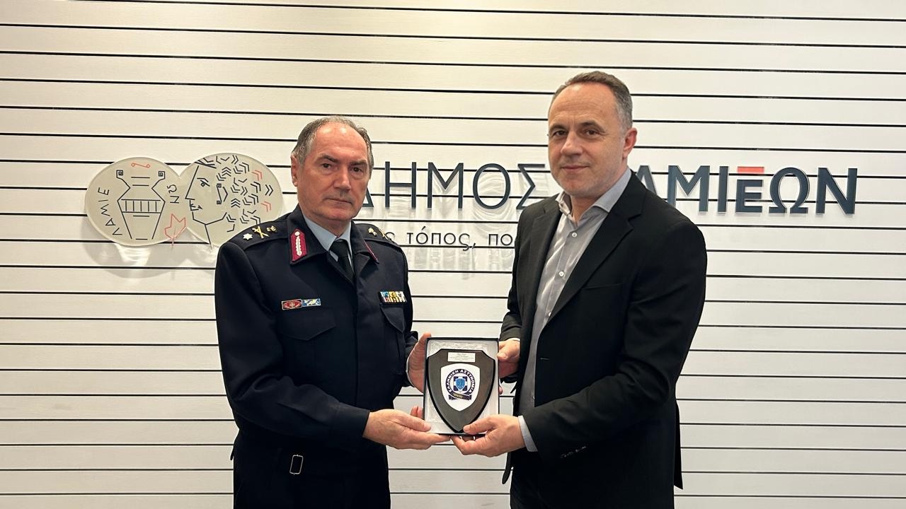 Ο Δήμαρχος Λαμιέων, Πανουργιάς Παπαϊωάννου, υποδέχθηκε στο Δημαρχείο σήμερα, Πέμπτη 12 Φεβρουαρίου, τον νέο Γενικό Περιφερειακό Αστυνομικό Διευθυντή Στερεάς Ελλάδας, Ταξίαρχο Κωνσταντίνο Πελεκάνο.