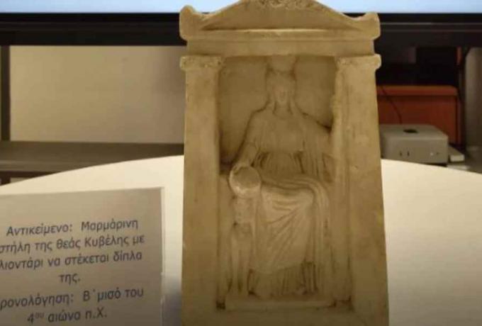 Στο πλαίσιο της έρευνας, εντοπίστηκε κρυμμένη σε πατάρι και κατασχέθηκε μια μαρμάρινη ναόσχημη αναθηματική στήλη (ένθρονη θεά Κυβέλη με ένα λιοντάρι δίπλα της), η οποία χρονολογείται στον 4ο π.Χ. αιώνα.