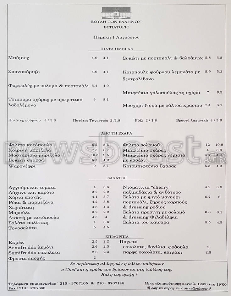 Γκουρμέ πιάτα με μεγάλη ποικιλία επιλογών σερβίρει ακόμη και μεσούντος του καλοκαιριού το εστιατόριο της Βουλής για τους εκπροσώπους του έθνους και τους συνεργάτες τους, για τους υπαλλήλους του Κοινοβουλίου και για τους πολιτικούς συντάκτες που το επισκέπτονται καθημερινά.