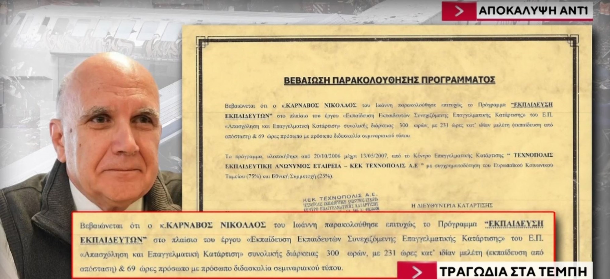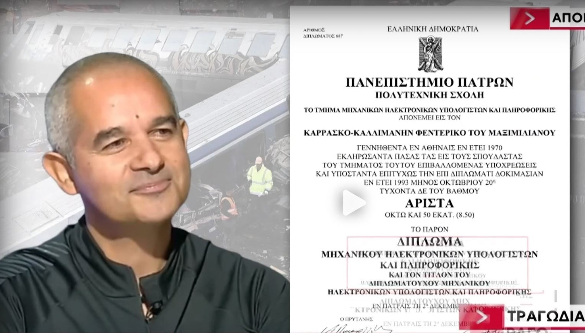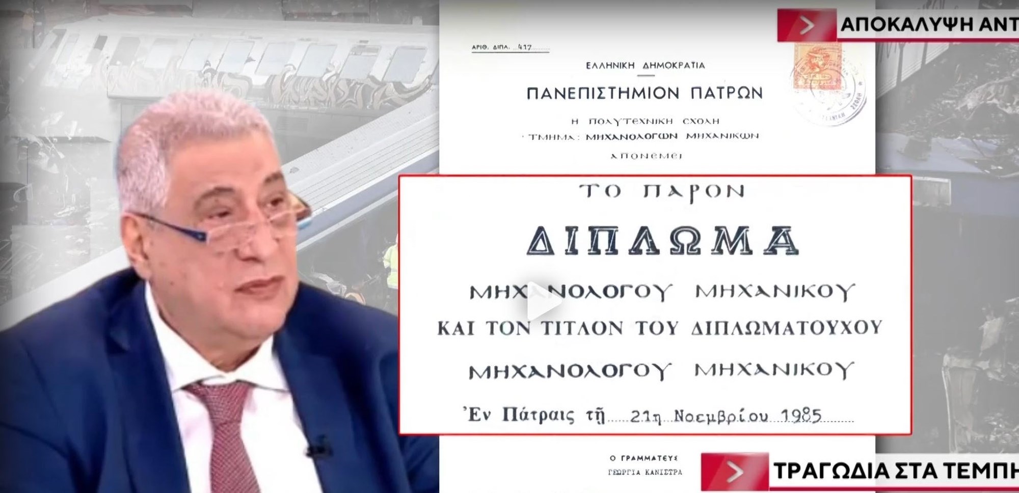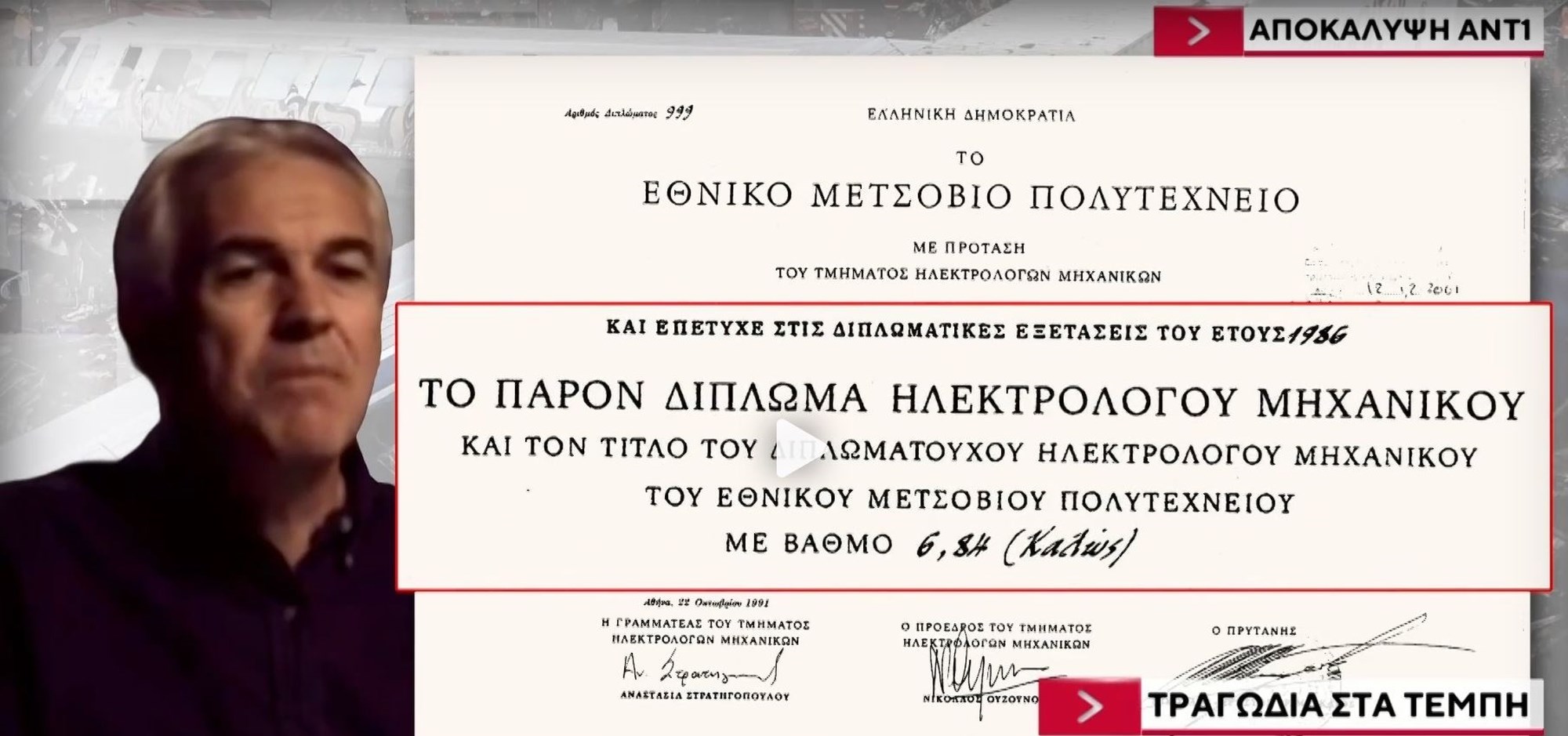 – Τους τίτλους σπουδών του χημικού Αχιλλέα Μιχόπουλου, ο οποίος κάνει λόγο για εύφλεκτη ουσία από 13 έως 15 τόνους στην εμπορική αμαξοστοιχία.
