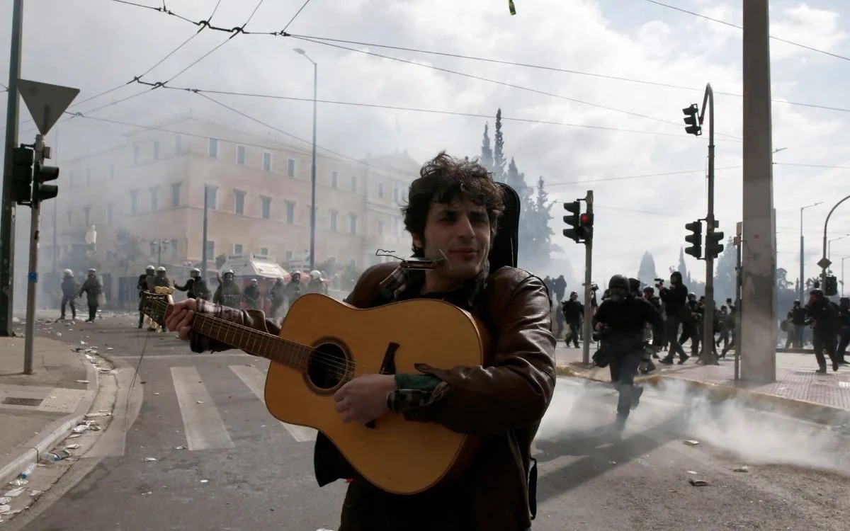 Από το μεσημέρι έως και αργά το απόγευμα της Παρασκευής, ο μουσικός, συνέχιζε απτόητος να παίζει μουσική δίπλα στους αστυνομικούς, ενώ την ίδια ώρα ο κόσμος έτρεχε για να προστατευτεί. Εκείνος, αψήφησε τα χημικά και δεν πήρε στιγμή τα δάχτυλά του από τις χορδές της κιθάρας του.