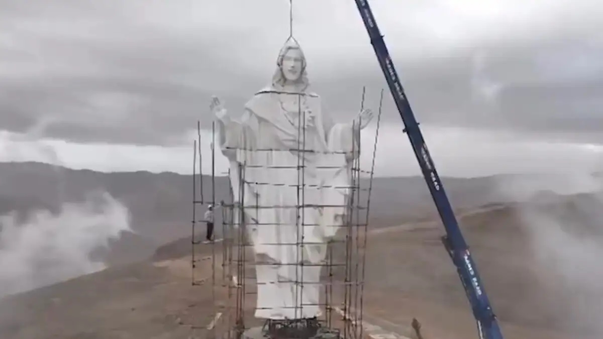 Una imponente figura de Cristo Redentor se alza como faro de paz en zona de eterno conflicto.
