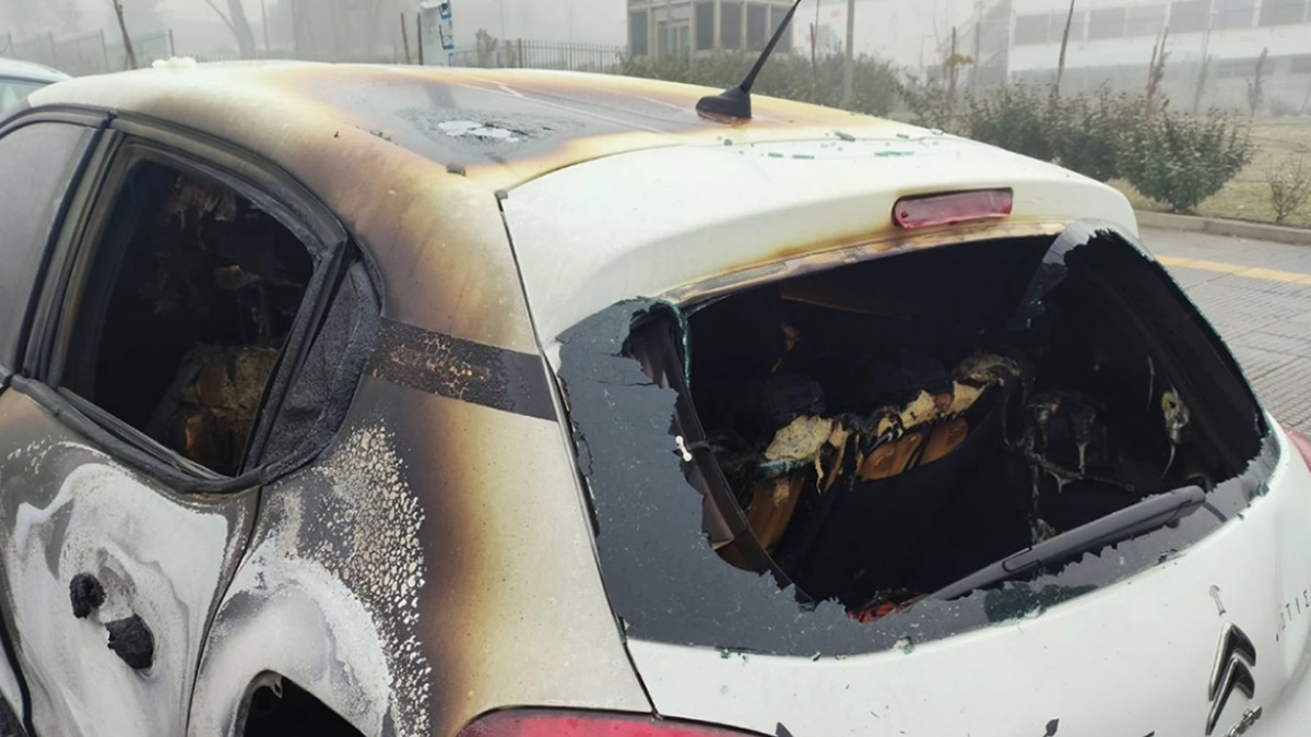 Από τη ρίψη μολότοφ ένα αυτοκίνητο καταστράφηκε ολοσχερώς ενώ άλλα δύο αυτοκίνητα έχουν υποστεί σοβαρές φθορές